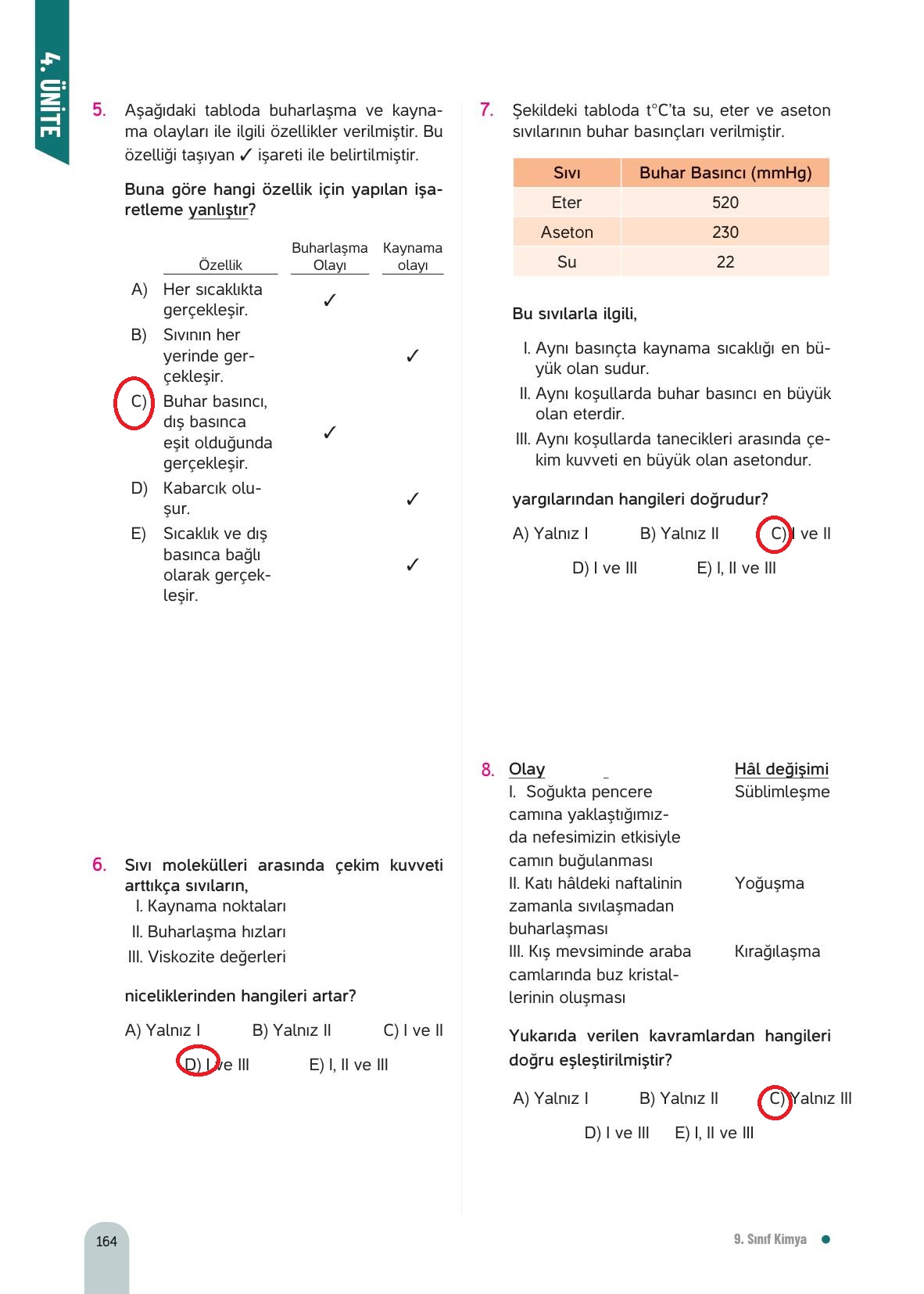 9. Sınıf Kimya Ders Kitabı Hecce Yayınları Sayfa 164 Cevapları