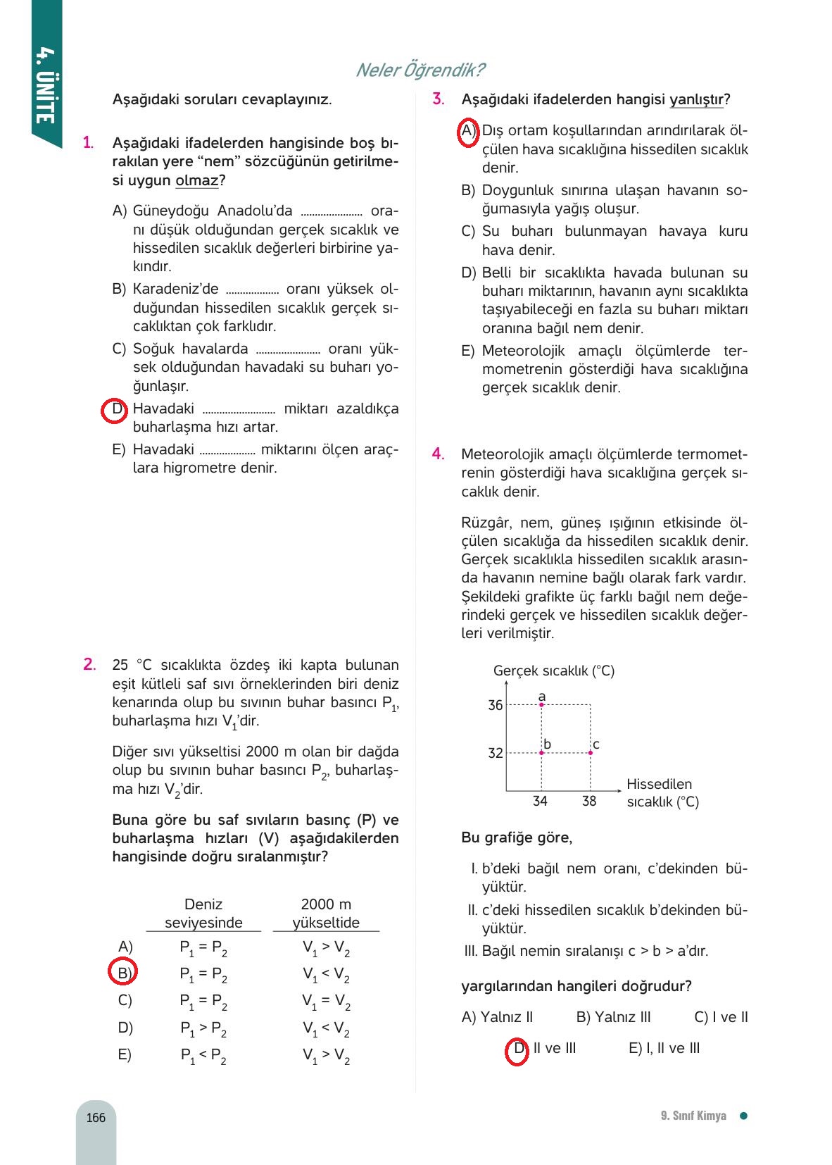 9. Sınıf Kimya Ders Kitabı Hecce Yayınları Sayfa 166 Cevapları