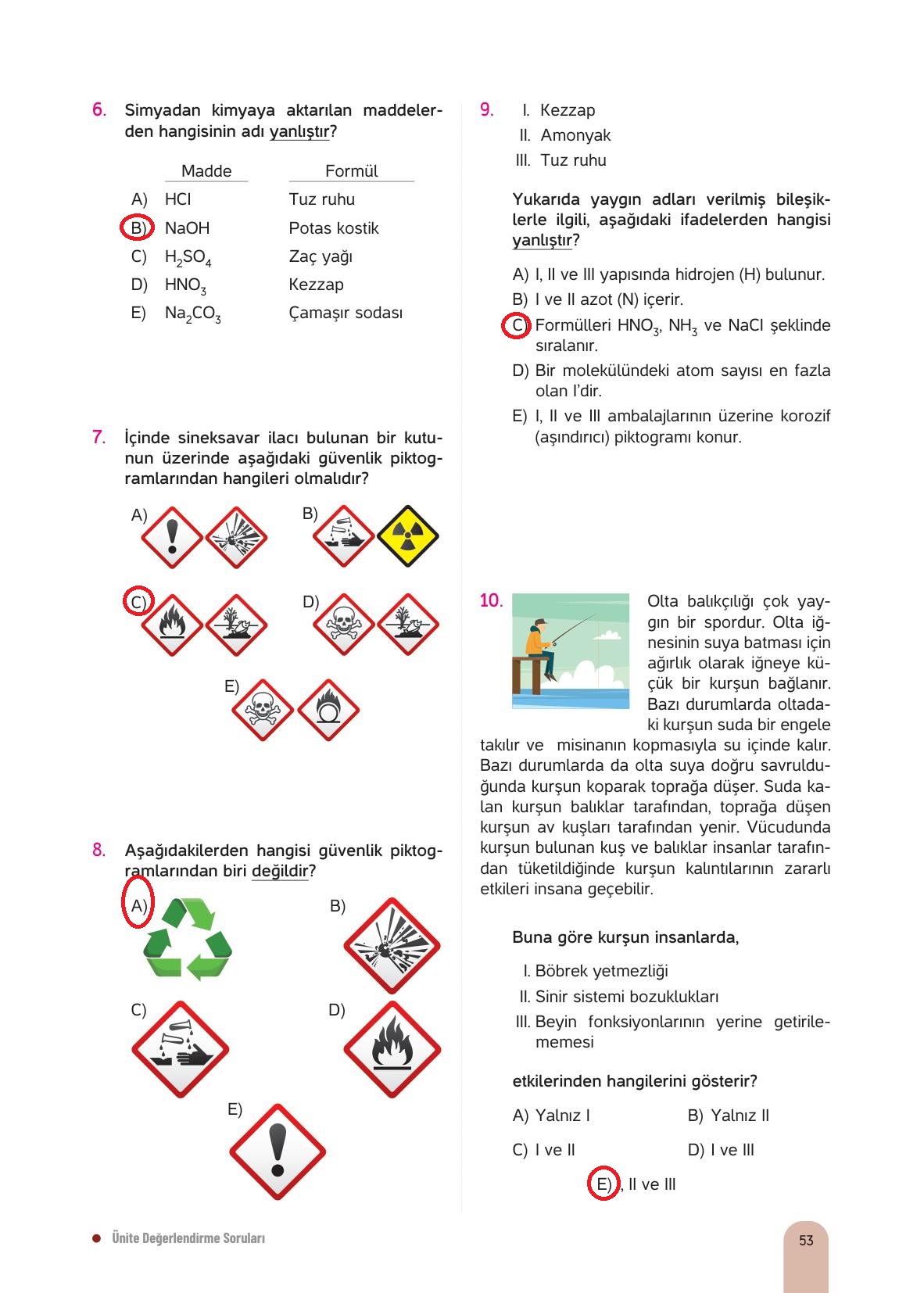 9. Sınıf Kimya Ders Kitabı Hecce Yayınları Sayfa 53 Cevapları