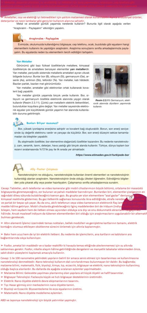 9. SINIF KİMYA PASİFİK YAYINLARI DERS KİTABI CEVAPLARI