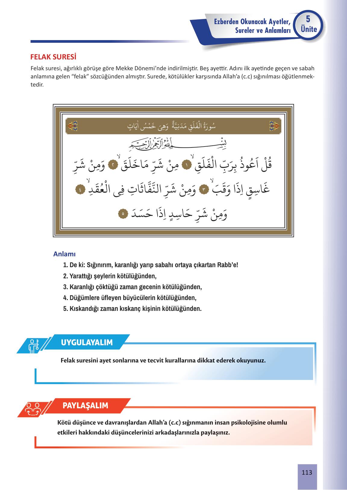 9.sınıf kuran-ı kerim ders kitabı meb yayınları sayfa 113 cevap anahtarı cevabı sayfa olarak çözümlerini yanıtları sizler için sunduk. Tüm ders kitabı cevapları gelecek yıl yine sitemizde olacak.
