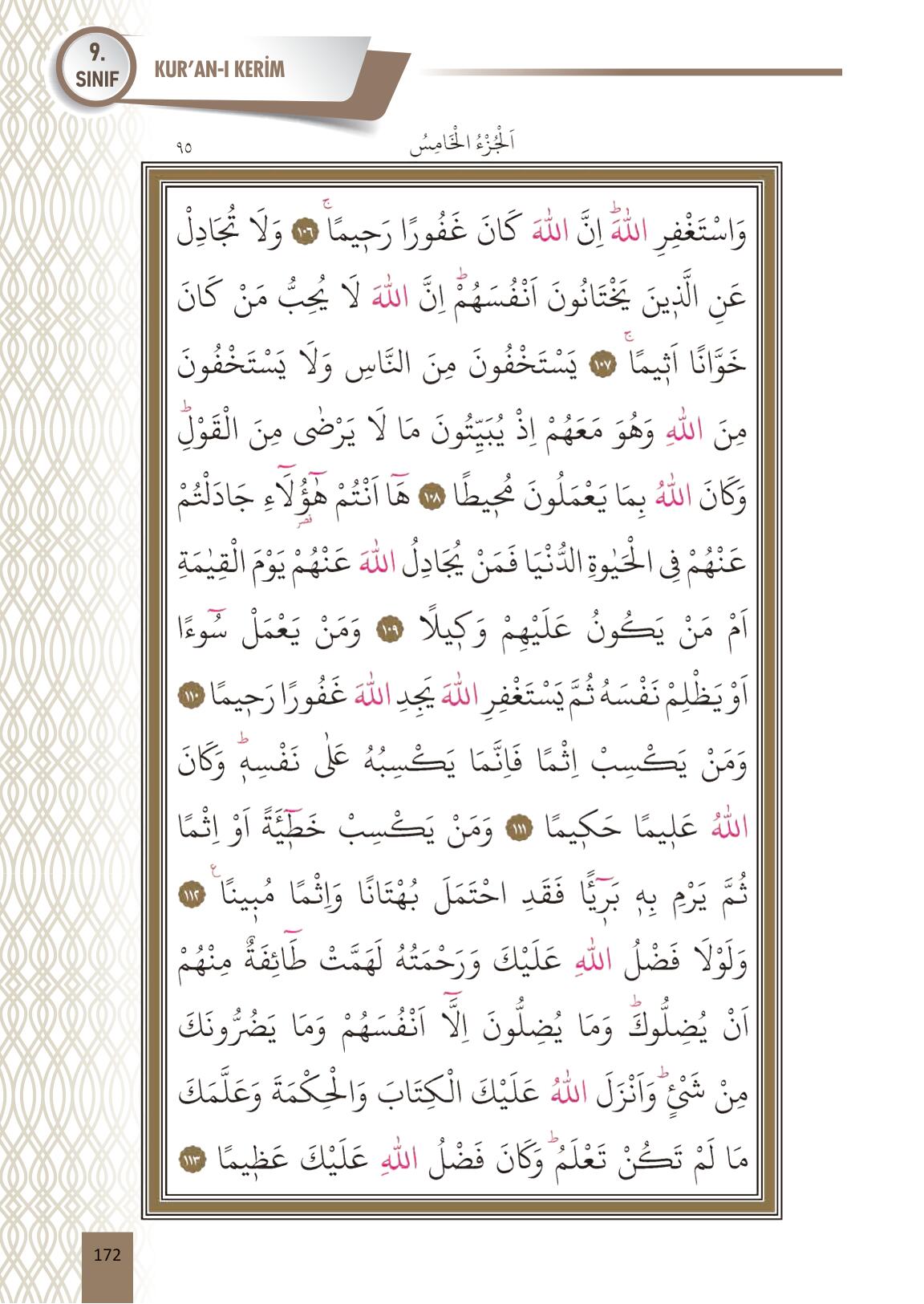 9.sınıf kuran-ı kerim ders kitabı meb yayınları sayfa 172 cevap anahtarı cevabı sayfa olarak çözümlerini yanıtları sizler için sunduk. Tüm ders kitabı cevapları gelecek yıl yine sitemizde olacak.