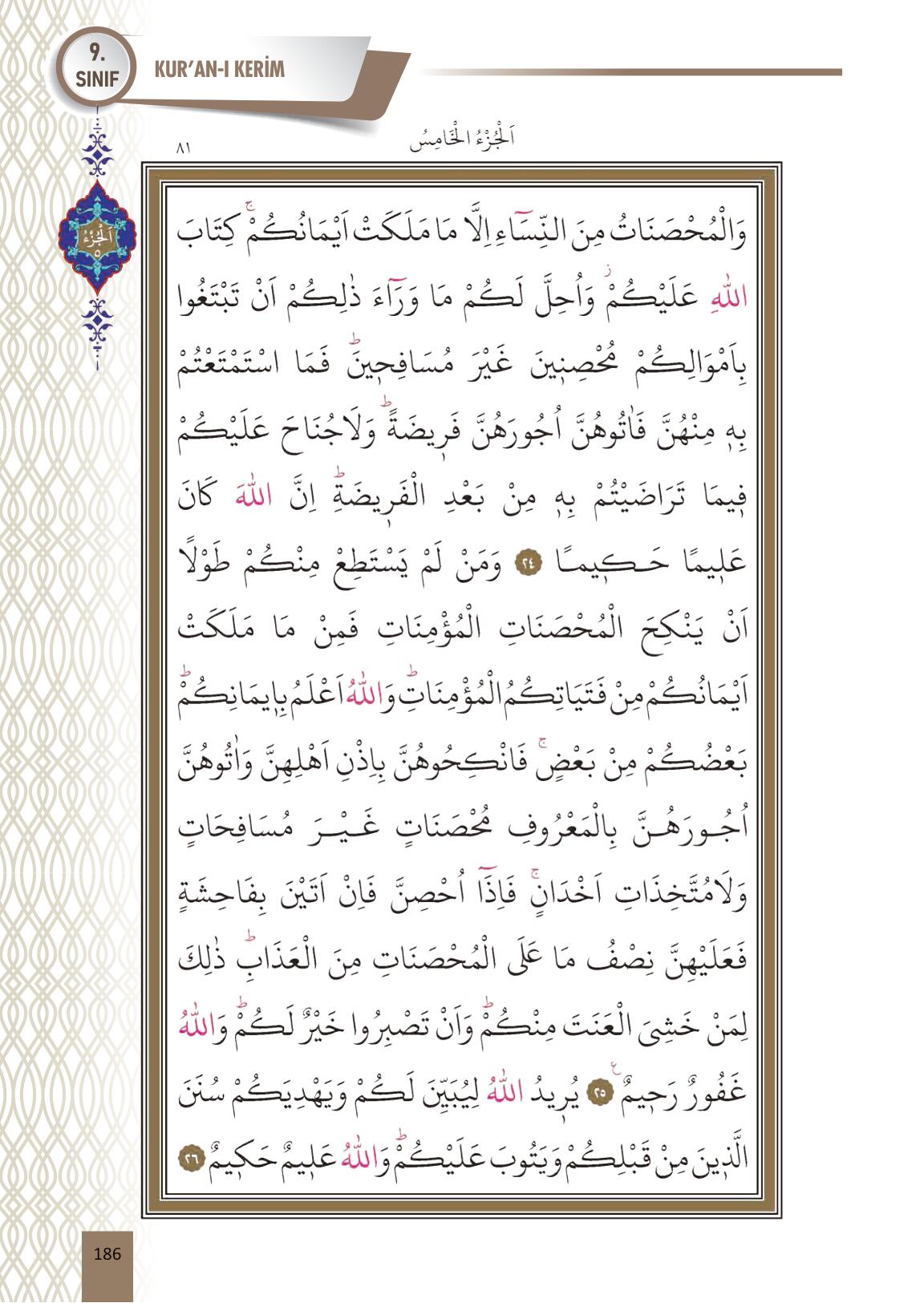 9.sınıf kuran-ı kerim ders kitabı meb yayınları sayfa 186 cevap anahtarı cevabı sayfa olarak çözümlerini yanıtları sizler için sunduk. Tüm ders kitabı cevapları gelecek yıl yine sitemizde olacak.