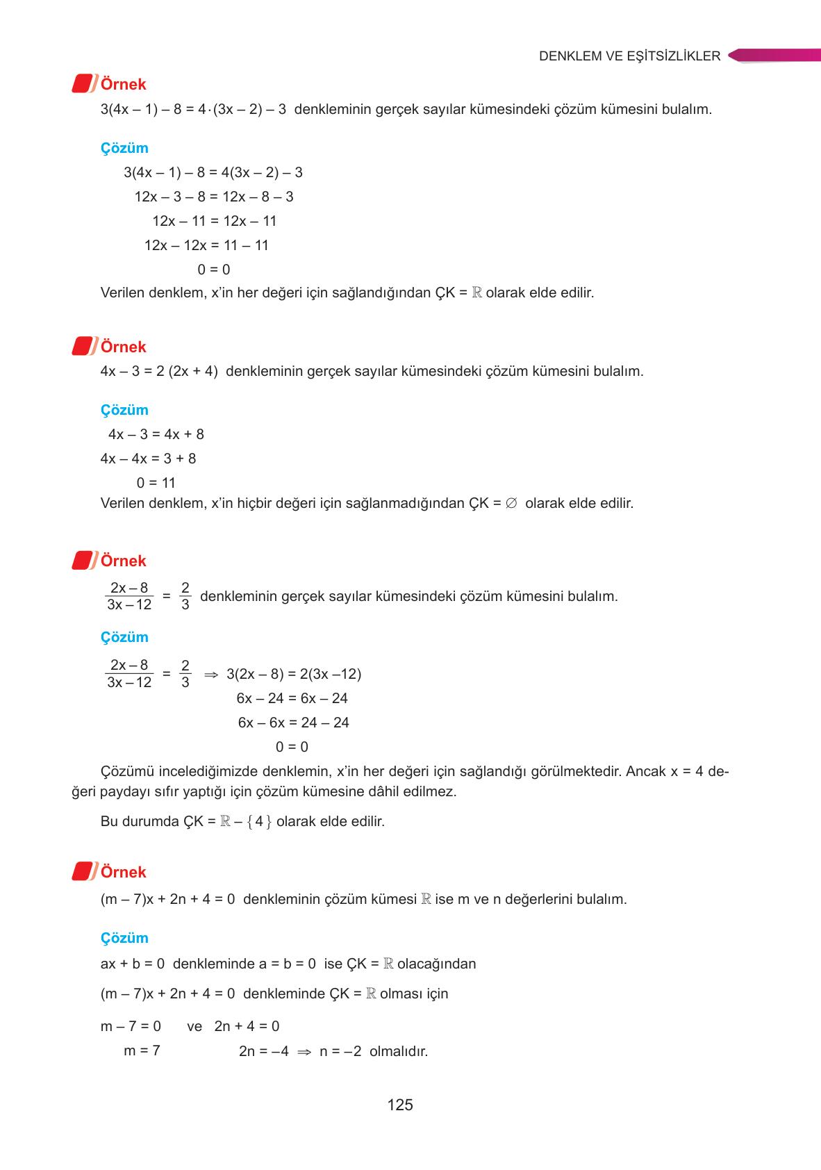 9. Sınıf Matematik Ders Kitabı Ata Yayıncılık Sayfa 125 Cevapları