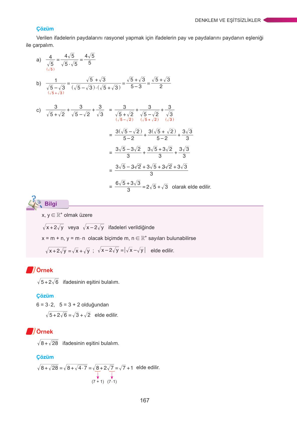 9. Sınıf Matematik Ders Kitabı Ata Yayıncılık Sayfa 167 Cevapları