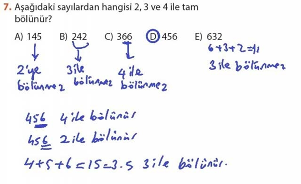 7. Aşağıdaki sayılardan hangisi 2, 3 ve 4 ile tam