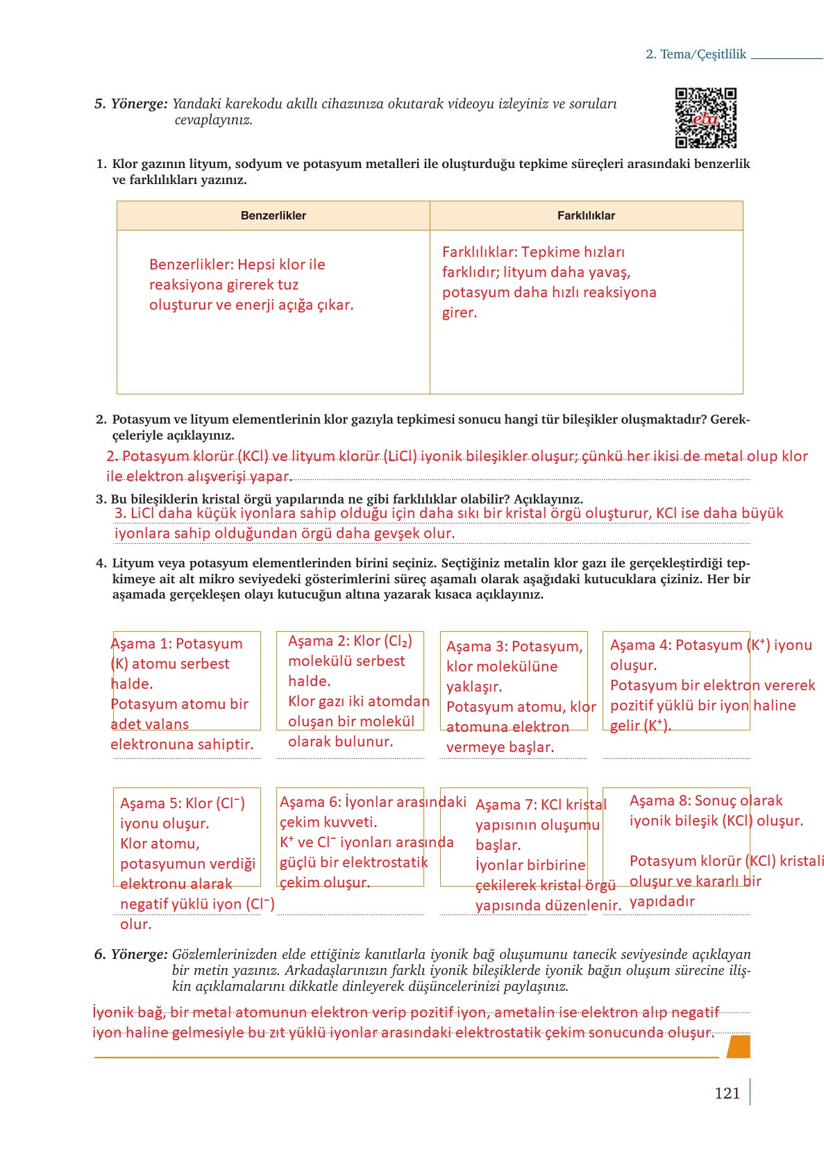 9. Sınıf Meb Yayınları Kimya Ders Kitabı Sayfa 121 Cevapları