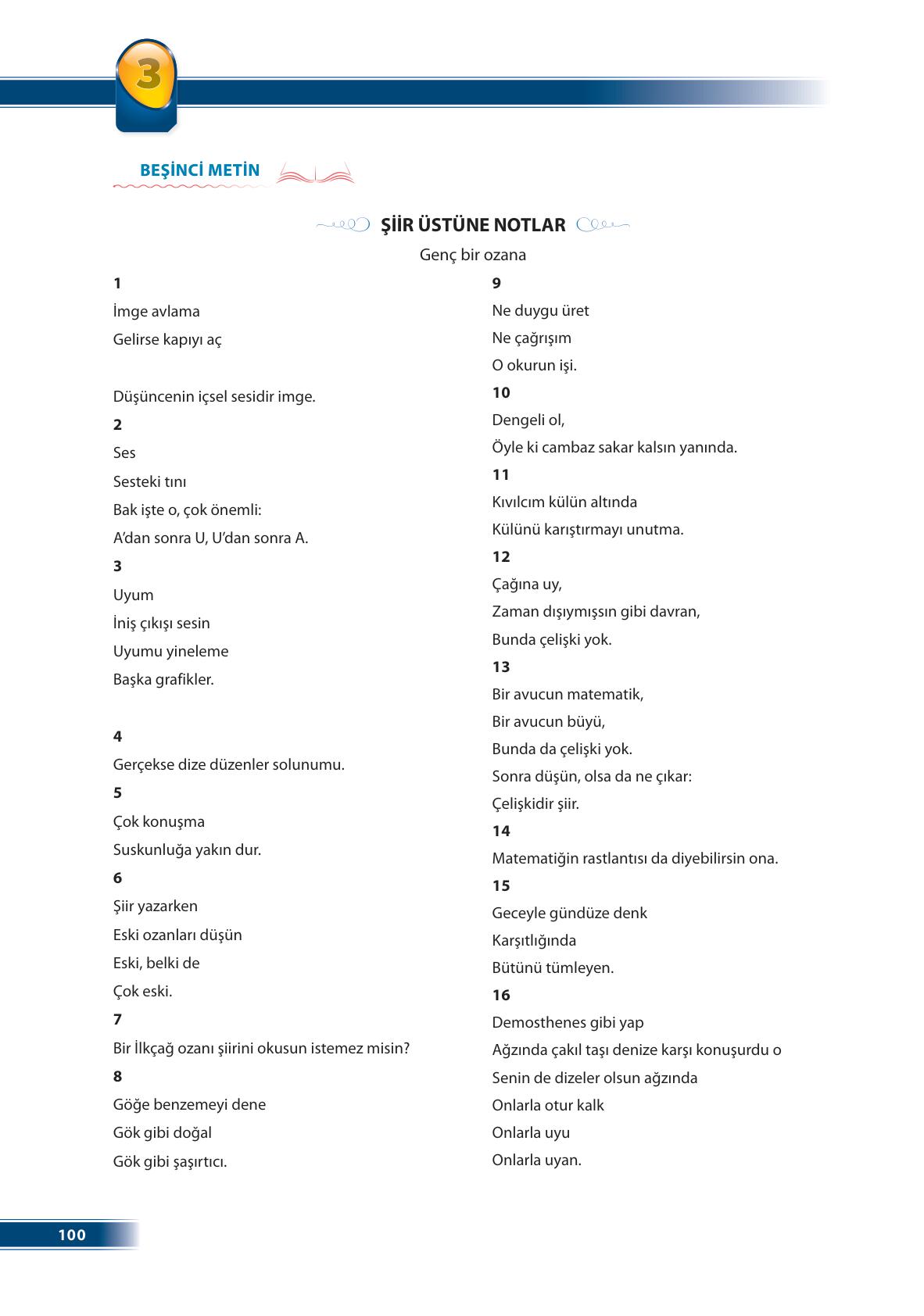 9.sınıf türk dili ve edebiyatı ders kitabı ödev yayınları sayfa 100 cevap anahtarı cevabı sayfa olarak çözümlerini yanıtları sizler için sunduk. Tüm ders kitabı cevapları gelecek yıl yine sitemizde olacak.