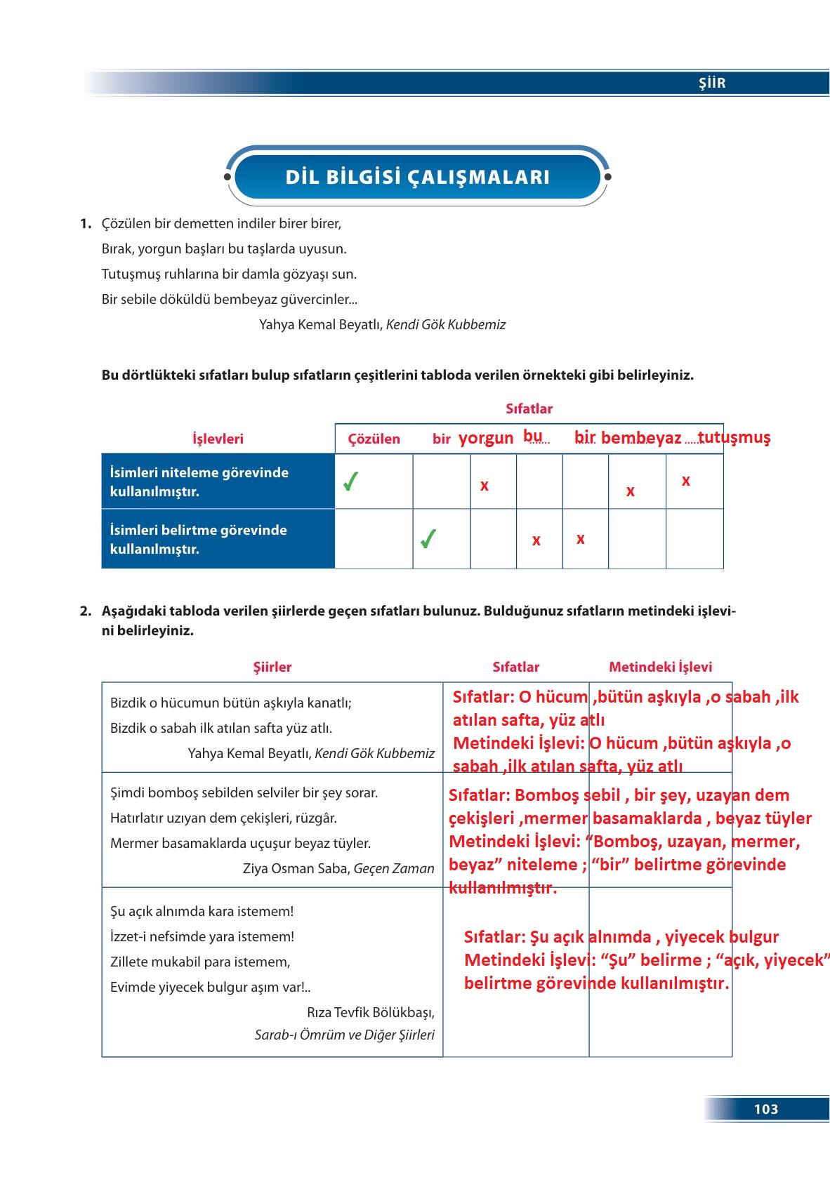 9.sınıf türk dili ve edebiyatı ders kitabı ödev yayınları sayfa 103 cevap anahtarı cevabı sayfa olarak çözümlerini yanıtları sizler için sunduk. Tüm ders kitabı cevapları gelecek yıl yine sitemizde olacak.