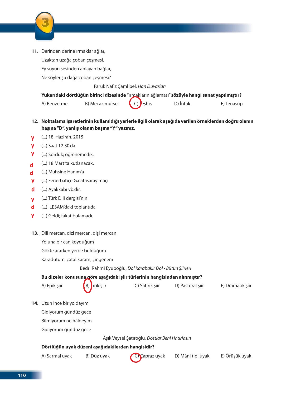 9. Sınıf Türk Dili ve Edebiyatı Ders Kitabı Ödev Yayınları Sayfa 110 Cevapları
