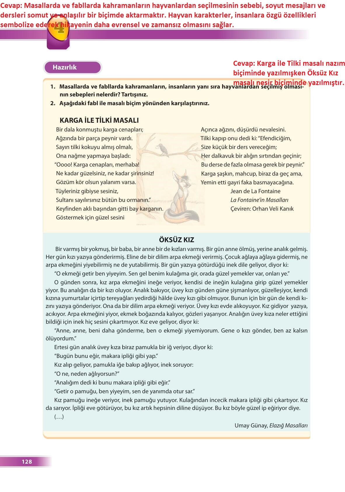 9. Sınıf Türk Dili ve Edebiyatı Ders Kitabı Ödev Yayınları Sayfa 128 Cevapları