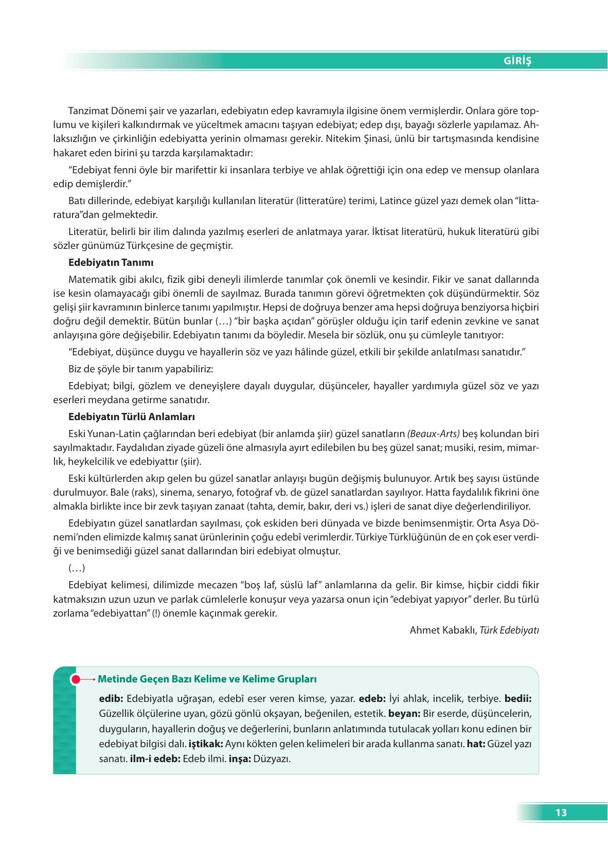 9. Sınıf Türk Dili ve Edebiyatı Ders Kitabı Ödev Yayınları Sayfa 13 Cevapları