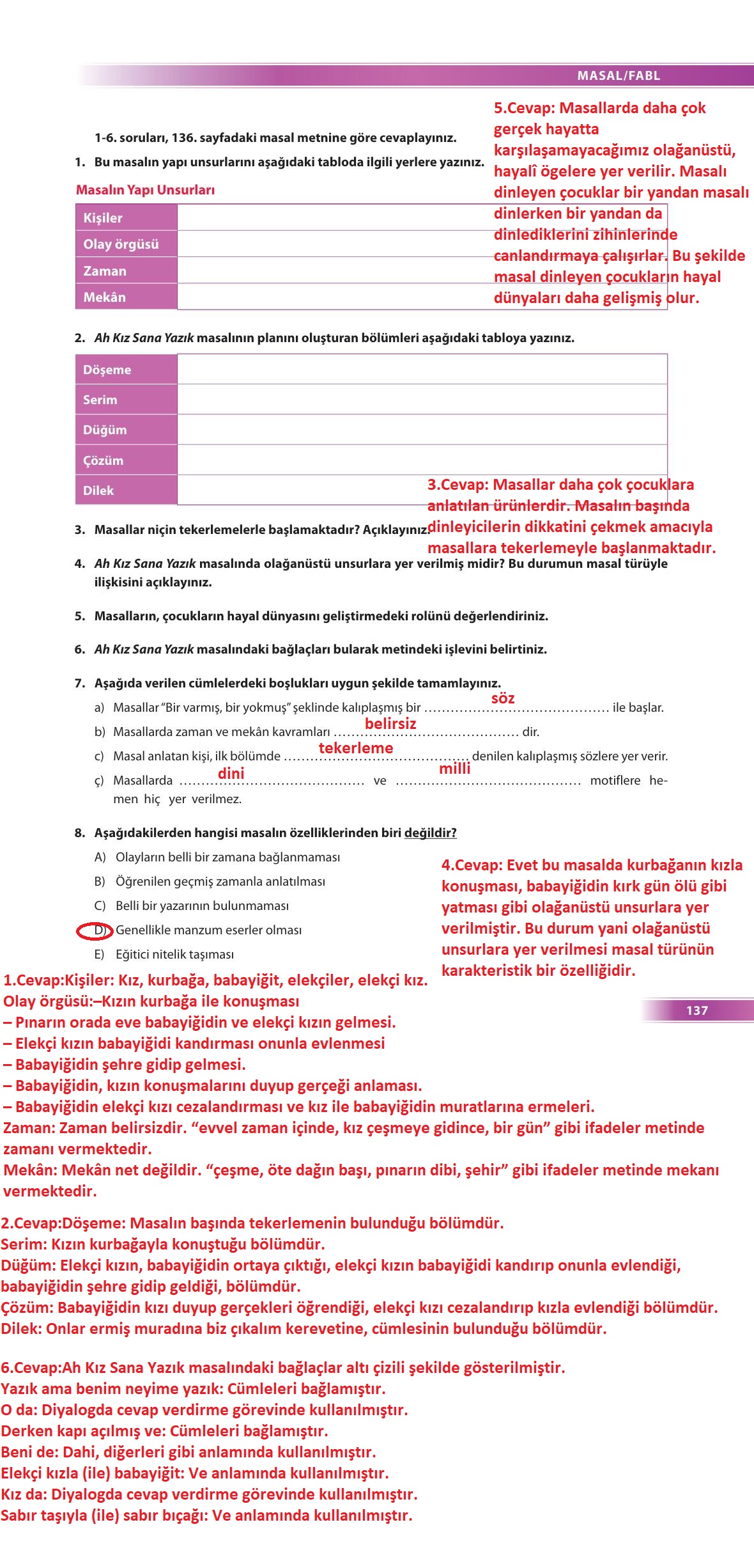 9. Sınıf Türk Dili ve Edebiyatı Ders Kitabı Ödev Yayınları Sayfa 137 Cevapları