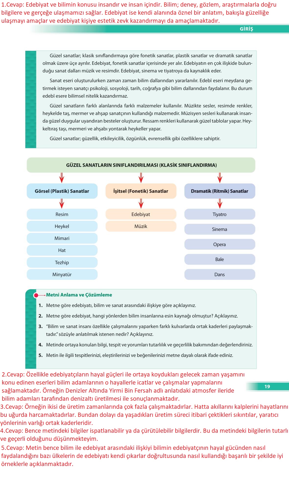 9. Sınıf Türk Dili ve Edebiyatı Ders Kitabı Ödev Yayınları Sayfa 19 Cevapları