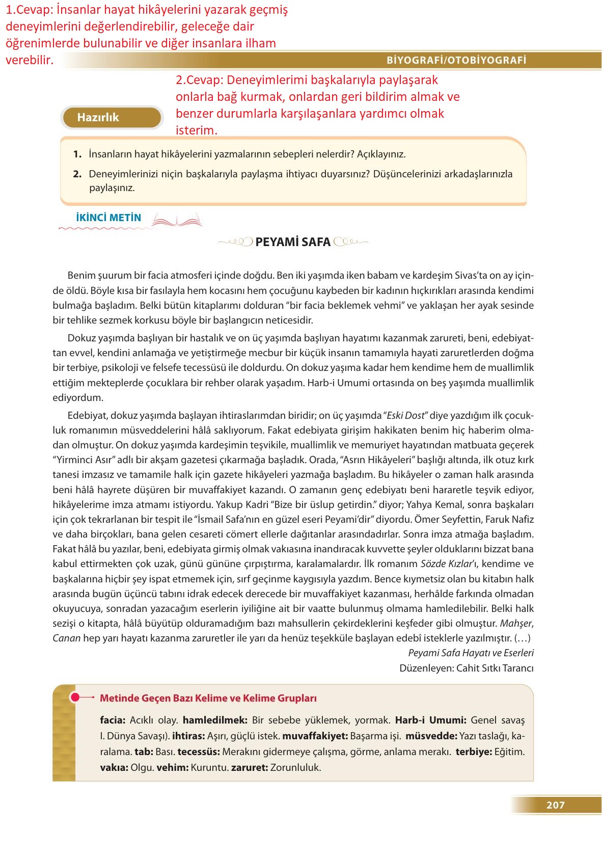 9.sınıf türk dili ve edebiyatı ders kitabı ödev yayınları sayfa 207 cevap anahtarı cevabı sayfa olarak çözümlerini yanıtları sizler için sunduk. Tüm ders kitabı cevapları gelecek yıl yine sitemizde olacak.