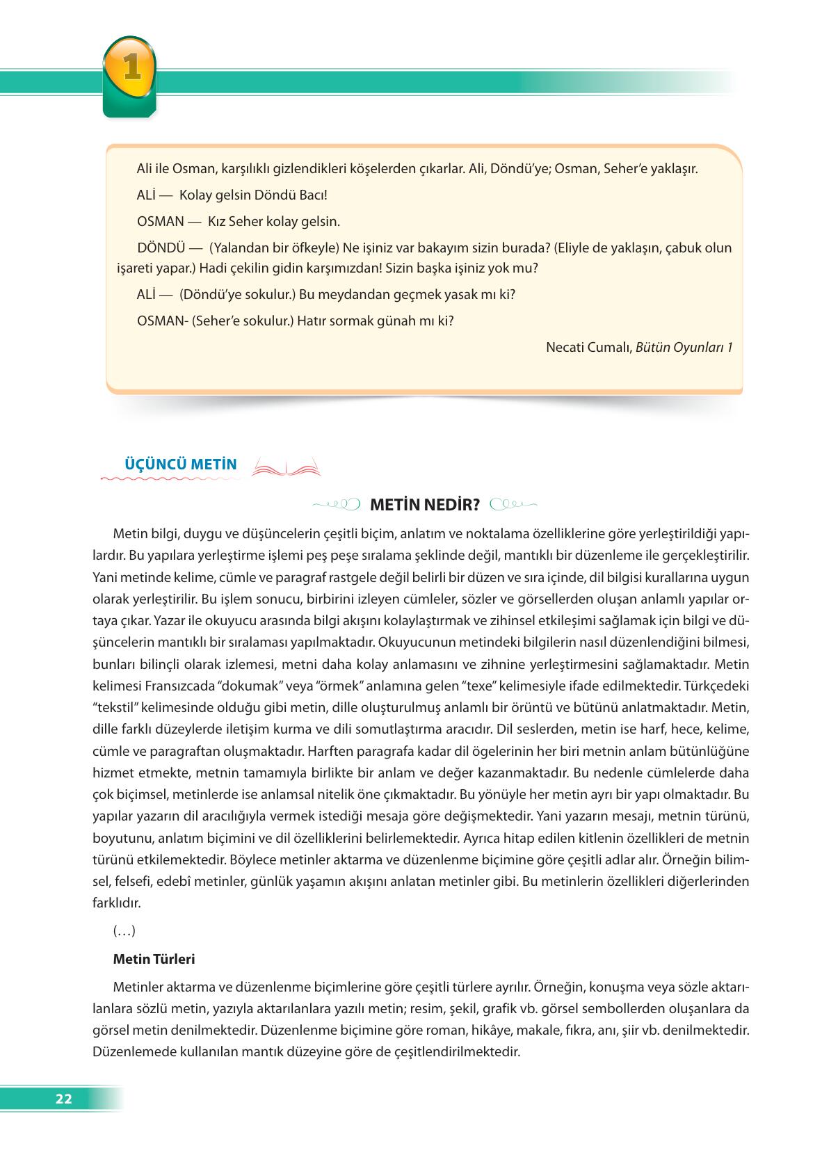 9. Sınıf Türk Dili ve Edebiyatı Ders Kitabı Ödev Yayınları Sayfa 22 Cevapları