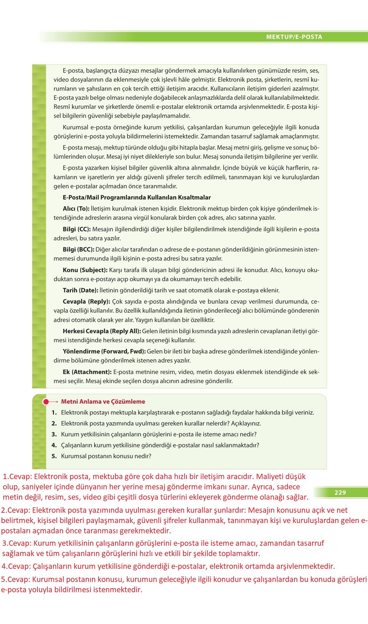 9.sınıf türk dili ve edebiyatı ders kitabı ödev yayınları sayfa 229 cevap anahtarı cevabı sayfa olarak çözümlerini yanıtları sizler için sunduk. Tüm ders kitabı cevapları gelecek yıl yine sitemizde olacak.