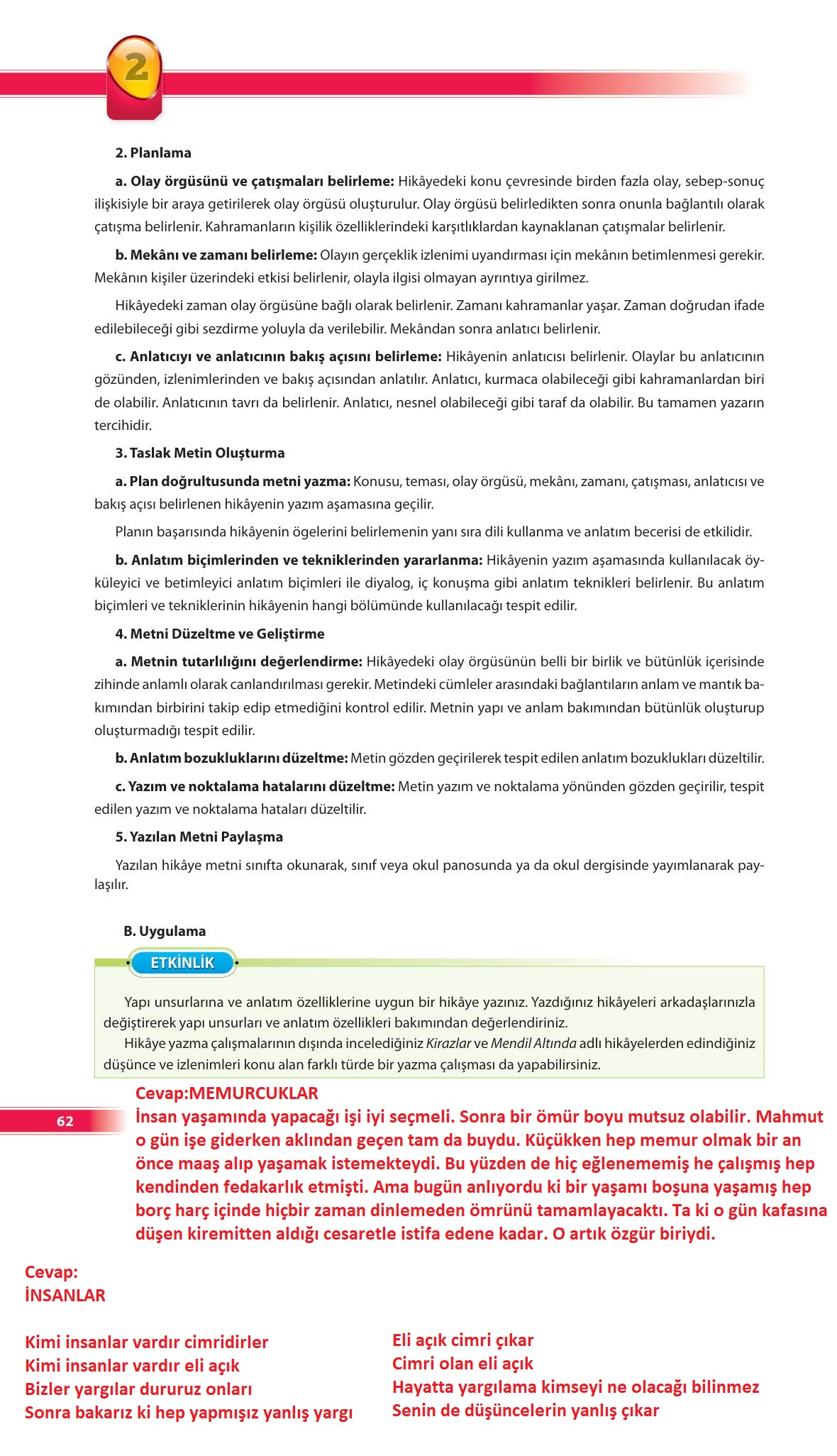 9.sınıf türk dili ve edebiyatı ders kitabı ödev yayınları sayfa 62 cevap anahtarı cevabı sayfa olarak çözümlerini yanıtları sizler için sunduk. Tüm ders kitabı cevapları gelecek yıl yine sitemizde olacak.