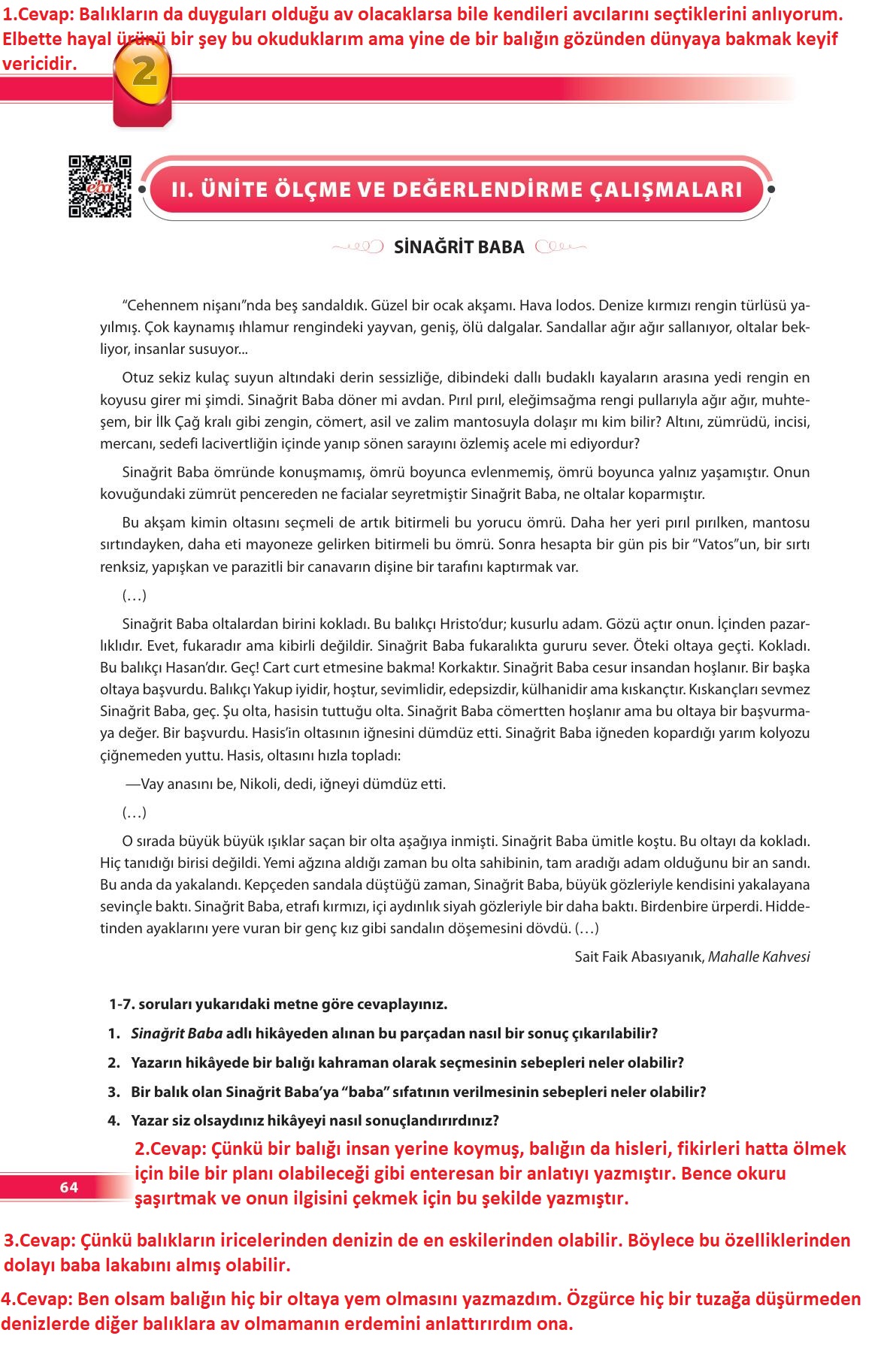 9. Sınıf Türk Dili ve Edebiyatı Ders Kitabı Ödev Yayınları Sayfa 64 Cevapları
