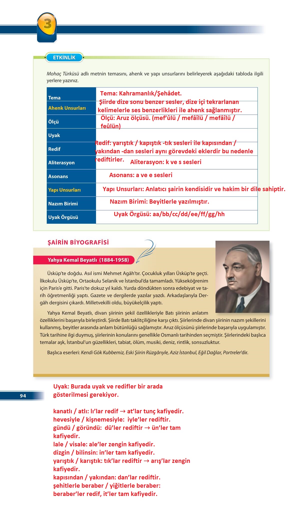 9. Sınıf Türk Dili ve Edebiyatı Ders Kitabı Ödev Yayınları Sayfa 94 Cevapları