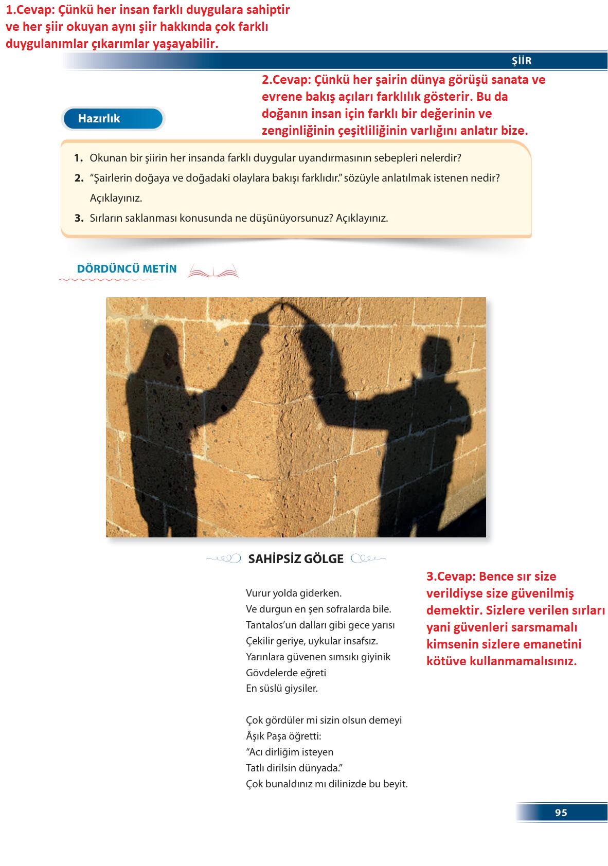 9. Sınıf Türk Dili ve Edebiyatı Ders Kitabı Ödev Yayınları Sayfa 95 Cevapları