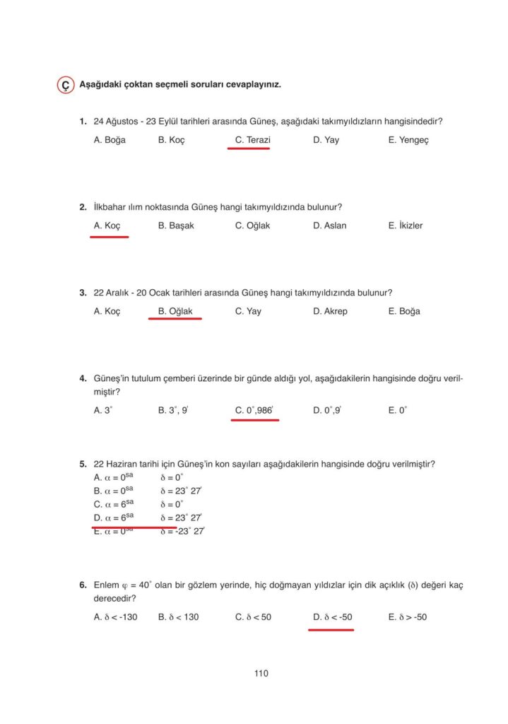 Astronomi ve Uzay Bilimleri Ata Yayınları Sayfa 110 Cevapları