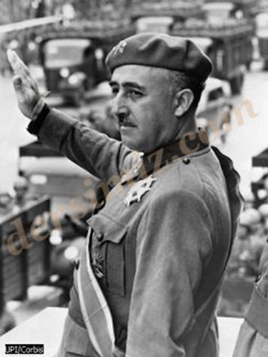 Carlos dışında tüm krallık ailesini sürgüne yolladı. II. Dünya Savaşı başladığında tarafsızlığını duyurdu. 1941’de Hitler ile buluştuktan sonra gönüllülerden kurulu “Mavi Tümen”i Almanların yanında savaşmak üzere cepheye yolladı. 1942’de Cortes meclisini kurdu. 1943’te Almanya’nın yenileceğini anlayarak yeniden tarafsızlığını duyurdu ve “gönüllü” taburunu geri çekti.