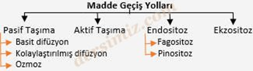 2. Büyük Moleküllerin Geçiş: Endositoz ve ekzositoz olmaküzere iki şekilde gerçekleşir.