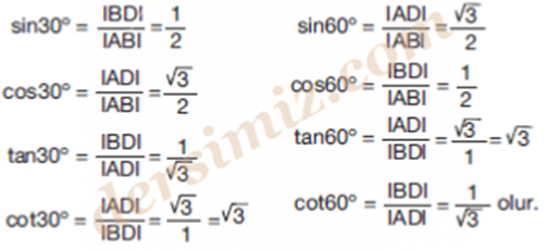 30-60-90 ÜÇGENİNİN TRİGONOMETRİK ORANLARI